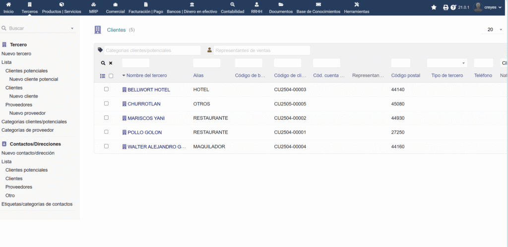 2. Elegir el cliente al cual se le va a anexar un contacto.